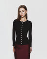 The minimalist button-front design allows versatile styling — fully buttoned for a polished look or slightly open for a subtle, feminine touch. Finished in a rich brown tone, this piece embodies modern simplicity and effortless elegance.