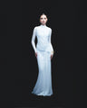 An elegant maxi dress designed with a refined, modern aesthetic. Featuring delicate draped ruching, the silhouette gracefully follows the body’s natural curves while creating a soft, sculpted effect.